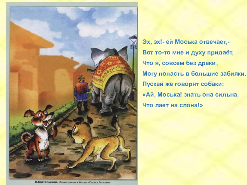 Слайд 28Эх, эх!- ей Моська отвечает,-