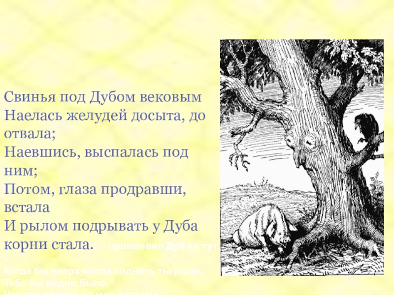 И рылом подрывать у Дуба корни стала.! – промолвил Дуб ей тут, -