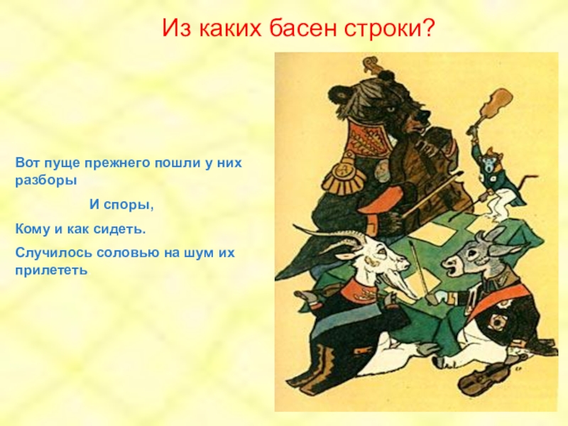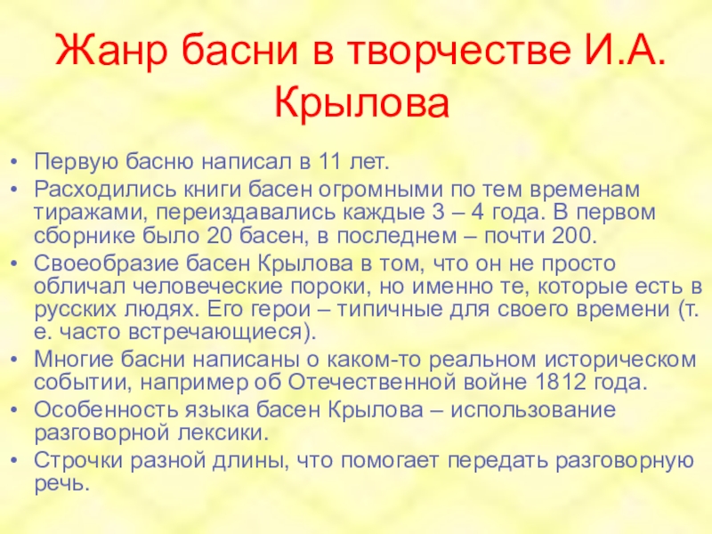Слайд 8Жанр басни в творчестве И.А.Крылова