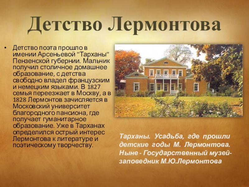 Тарханы. Усадьба, где прошли детские годы М. Лермонтова. Ныне - Государственный музей-заповедник М.Ю.Лермонтова