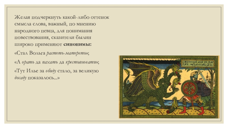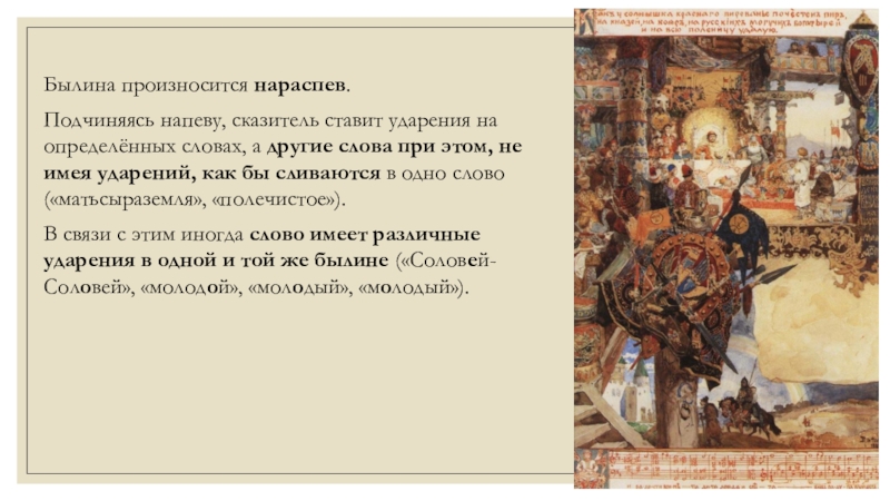 Слайд 4В былинах, как и вообще в произведениях устной народной поэзии, каждое