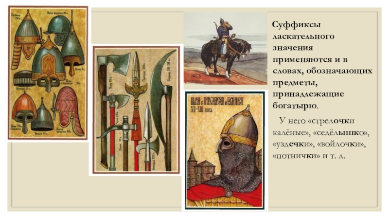 Слайд 9 Важную роль в языке былин играют существительные с уменьшительными и