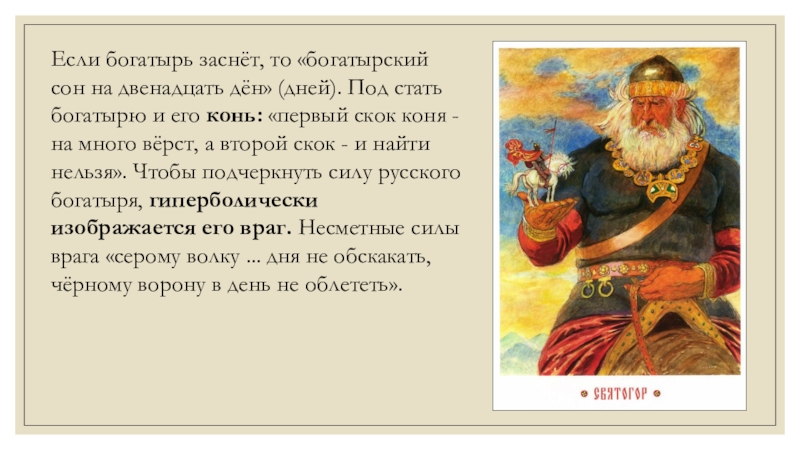 Слайд 3Если богатырь заснёт, то «богатырский сон на двенадцать дён» (дней). Под