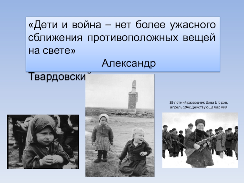 15-летний разведчик Вова Егоров, апрель 1942 Действующая армия