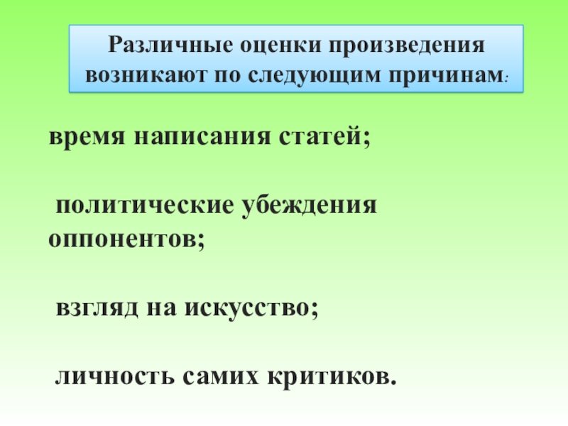 “Увлечение нервной страстной женщины и борьба с долгом, падение, раскаяние и тяжкое искупление вины - все это исполнено живейшего драматического интереса и ведено с необычайным искусством и знанием сердца” (И.Гончаров).