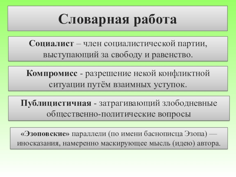 «Эзоповские» параллели (по имени баснописца Эзопа) —иносказания, намеренно маскирующее мысль (идею) автора.