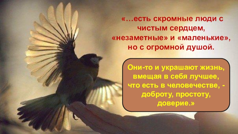 «…есть скромные люди с чистым сердцем, «незаметные» и «маленькие», но с огромной душой.
