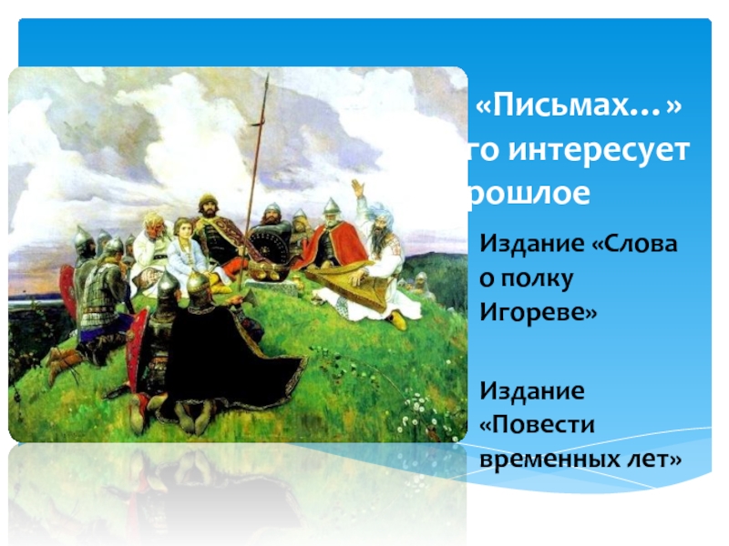 В «Письмах…» его интересует прошлоеИздание «Слова о полку Игореве»Издание «Повести временных лет»