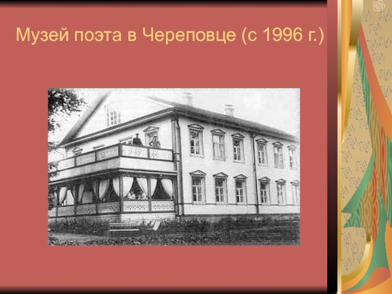 Слайд 28Музей поэта в Череповце (с 1996 г.)