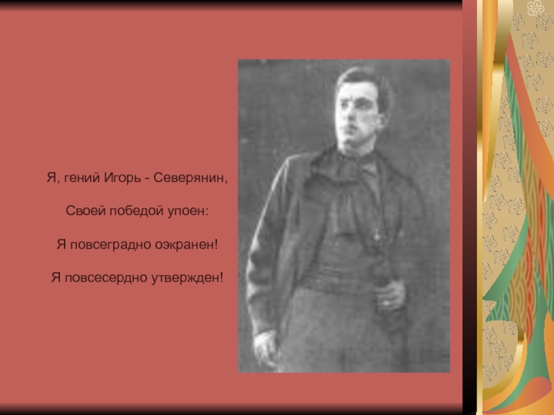 Слайд 1Игорь Северянин (Игорь Васильевич Лотарев, родился 4 (16) мая 1887 г.,