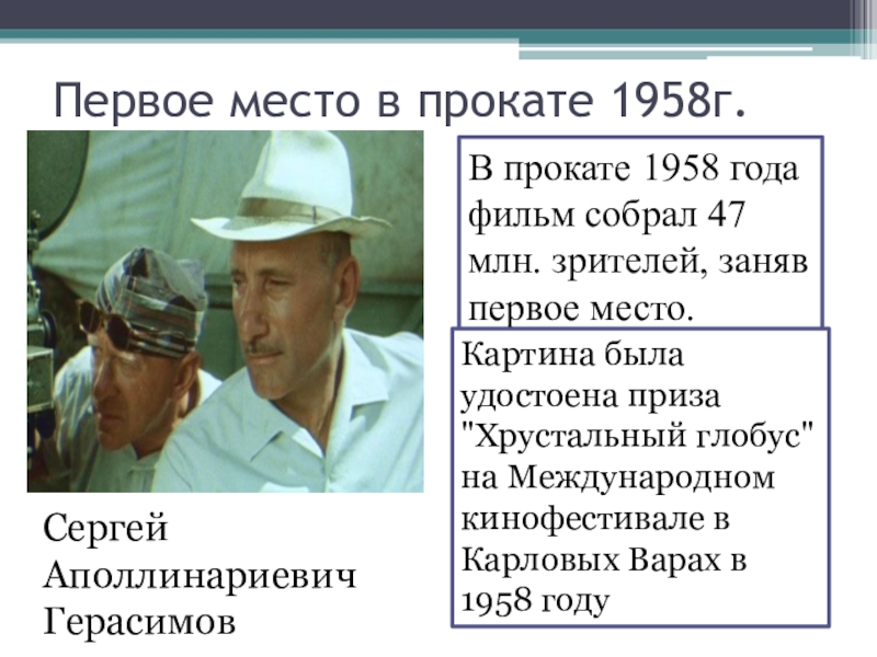 Слайд 35Сергей Герасимов с Григорием и Аксиньей