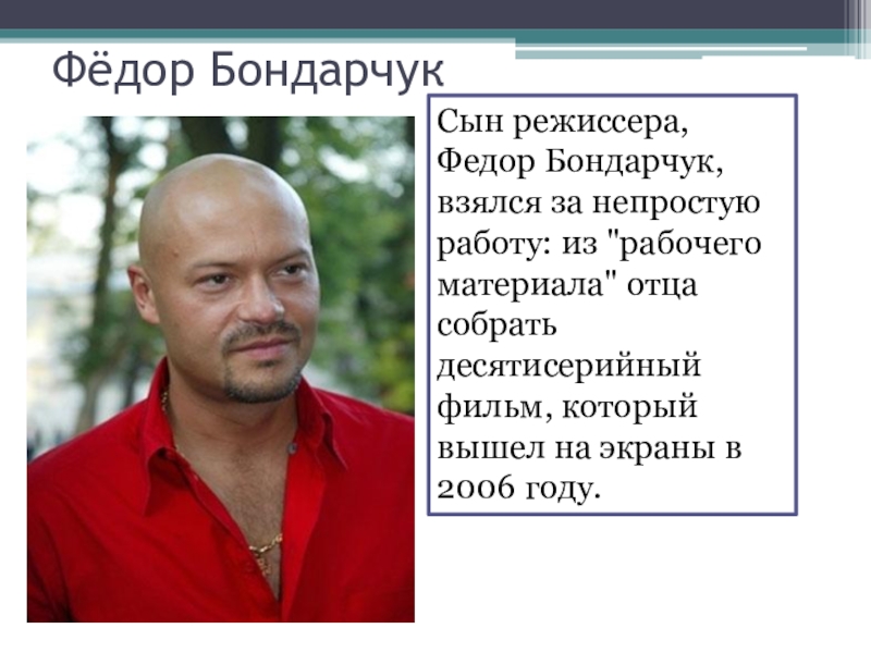 Сын режиссера, Федор Бондарчук, взялся за непростую работу: из