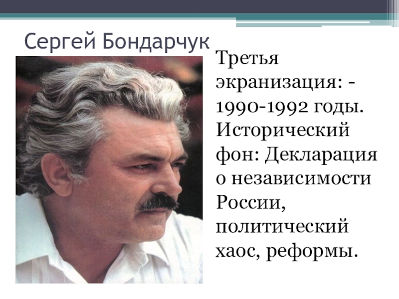 Третья экранизация: - 1990-1992 годы. Исторический фон: Декларация о независимости