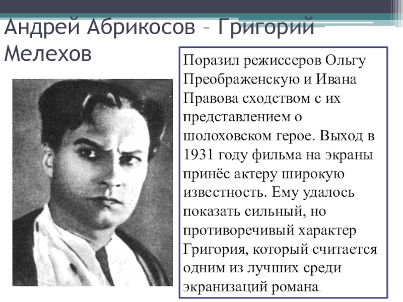 Слайд 14Андрей Абрикосов – Григорий Мелехов