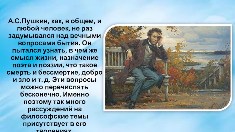 Слайд 3А.С.Пушкин, как, в общем, и любой человек, не раз задумывался над
