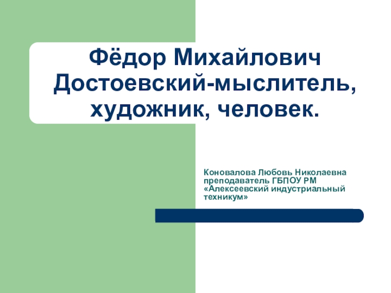 Слайд 1Фёдор Михайлович Достоевский-мыслитель, художник, человек.