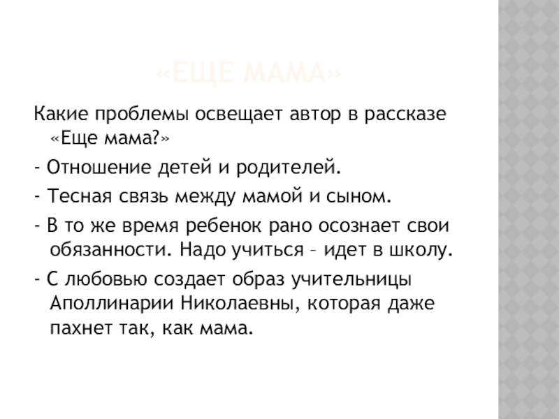Какие проблемы освещает автор в рассказе «Еще мама?»