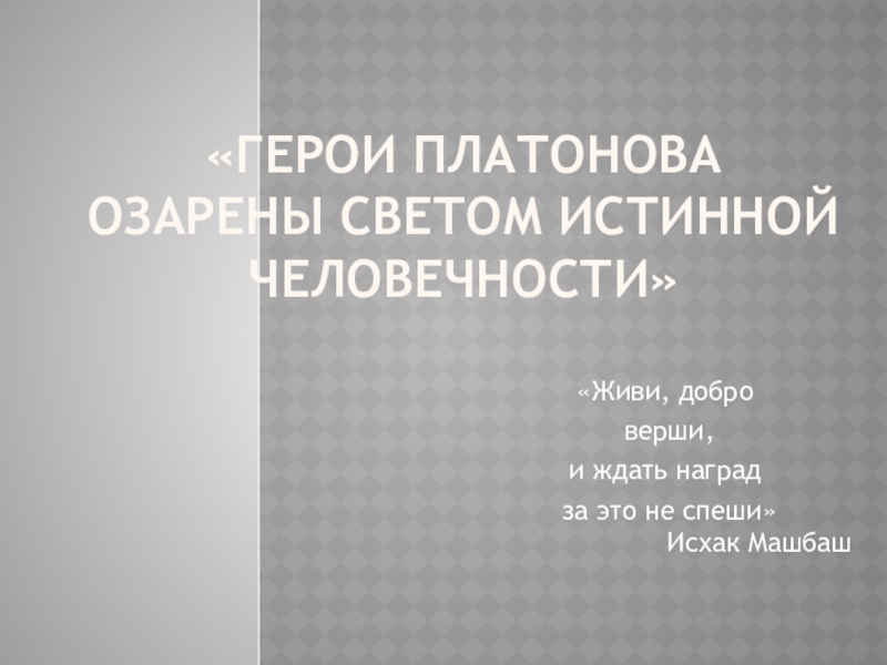 Слайд 1«Герои Платонова озарены светом истинной человечности»