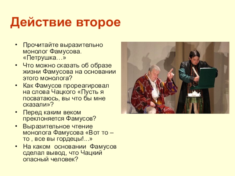 Прочитайте выразительно монолог Фамусова. «Петрушка…»