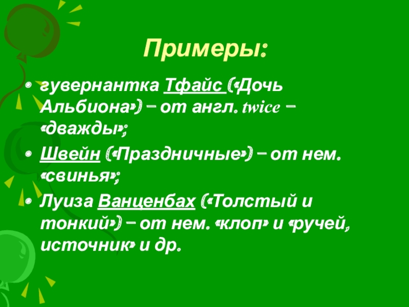 гувернантка Тфайс («Дочь Альбиона») – от англ. twice – «дважды»;