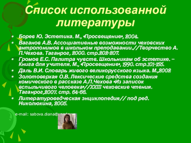 чеховских антропонимов в школьном преподавании.//Творчество А.П.Чехова. Таганрог, 2000. стр.202-207.