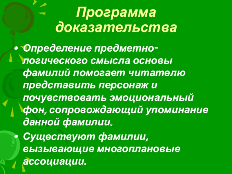 Определение предметно-логического смысла основы фамилий помогает читателю представить персонаж и