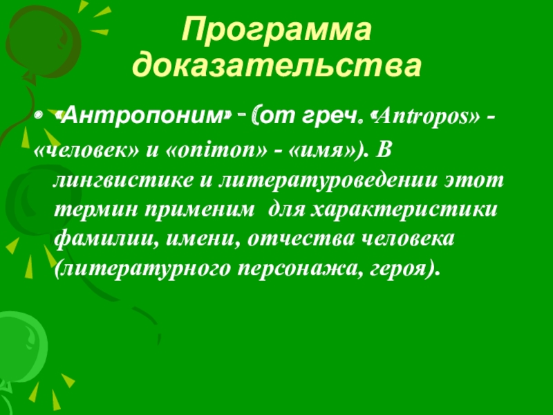 «имя»). В лингвистике и литературоведении этот термин применим для характеристики фамилии, имени, отчества человека (литературного персонажа, героя).