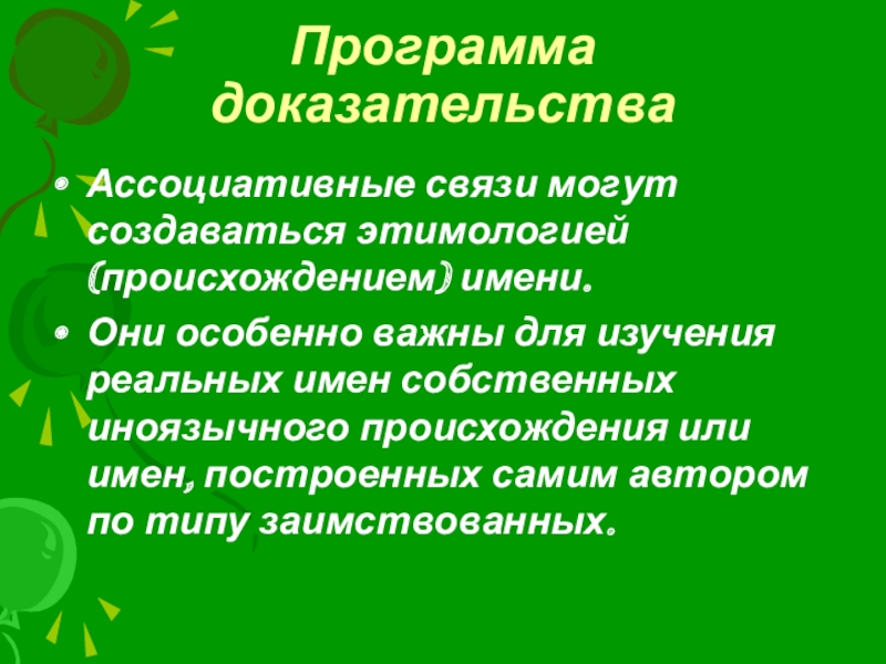 изучения реальных имен собственных иноязычного происхождения или имен, построенных самим автором по типу заимствованных.