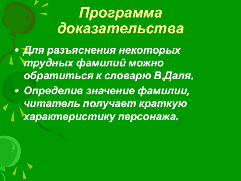 значение фамилии, читатель получает краткую характеристику персонажа.