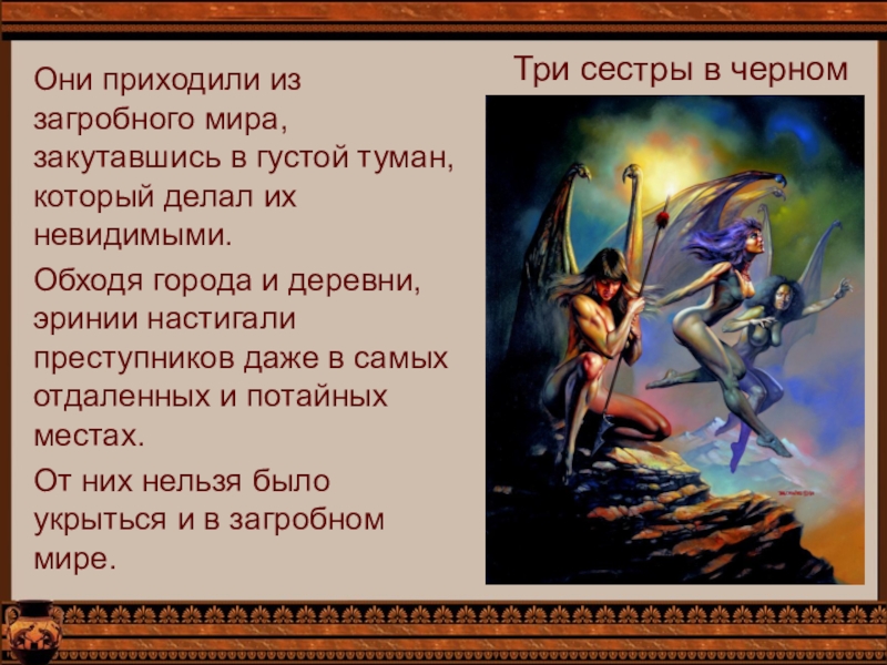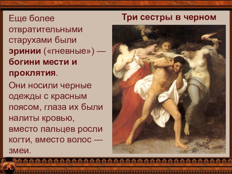Обходя города и деревни, эринии настигали преступников даже в самых отдаленных и потайных местах.