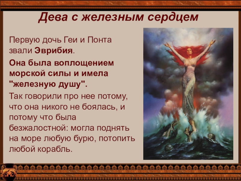 Слайд 49Первую дочь Геи и Понта звали Эврибия.