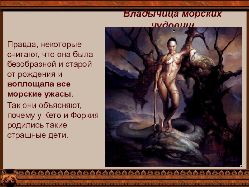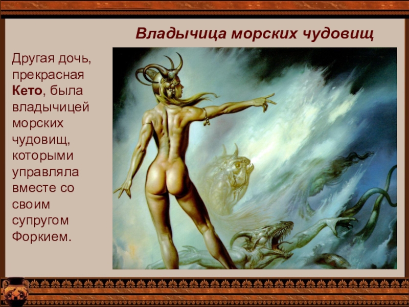 Слайд 50Другая дочь, прекрасная Кето, была владычицей морских чудовищ, которыми управляла вместе