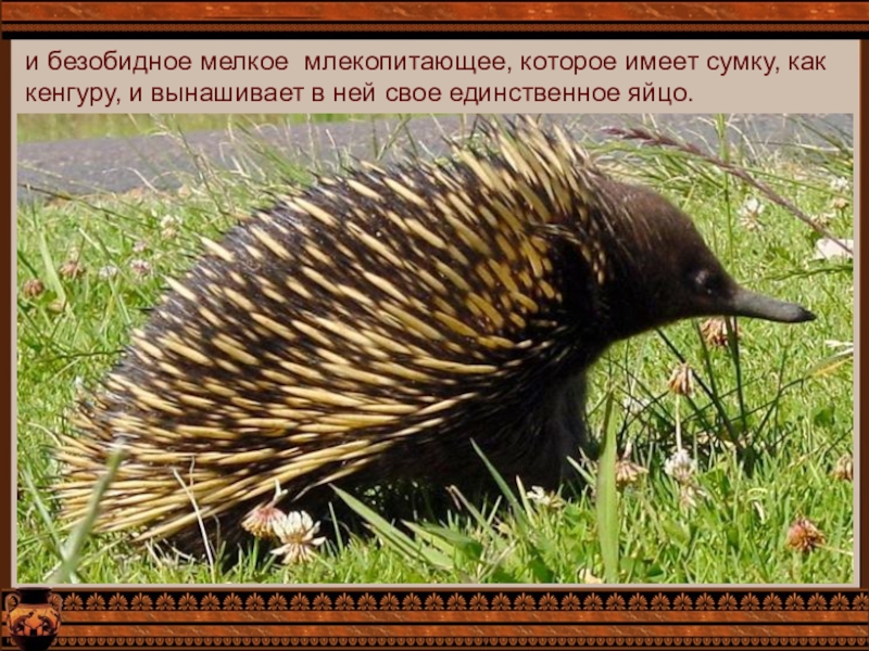 Слайд 38и безобидное мелкое млекопитающее, которое имеет сумку, как кенгуру, и вынашивает