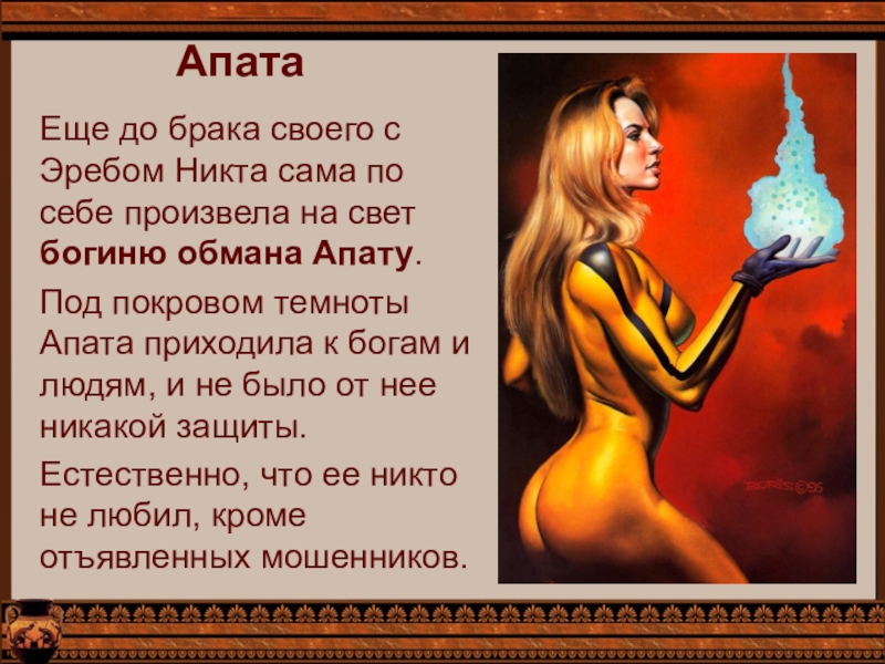 Под покровом темноты Апата приходила к богам и людям, и не было от нее никакой защиты.