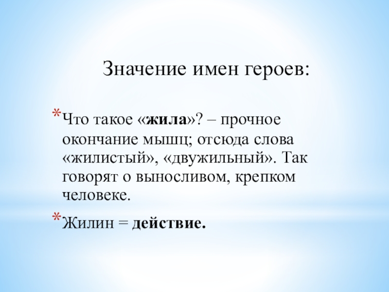 Что такое «жила»? – прочное окончание мышц; отсюда слова «жилистый», «двужильный». Так говорят о выносливом, крепком человеке.