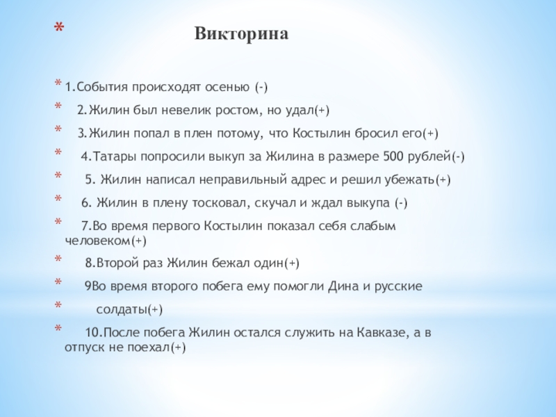 3.Жилин попал в плен потому, что Костылин бросил его(+)