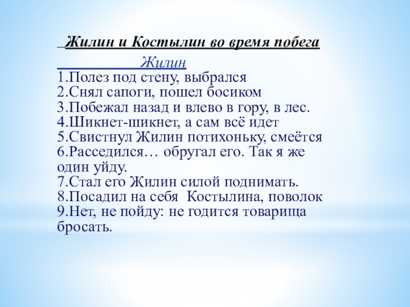 Слайд 18 Жилин и Костылин во время побега