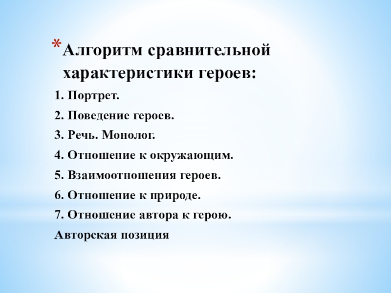 Слайд 11Алгоритм сравнительной характеристики героев: