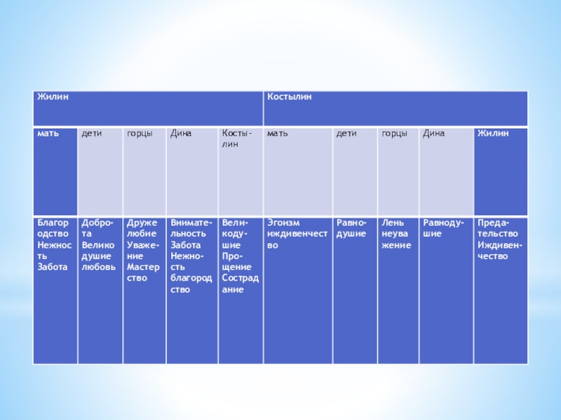 сравнительной характеристики персонажей