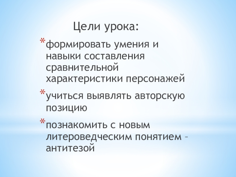 познакомить с новым литероведческим понятием –антитезой