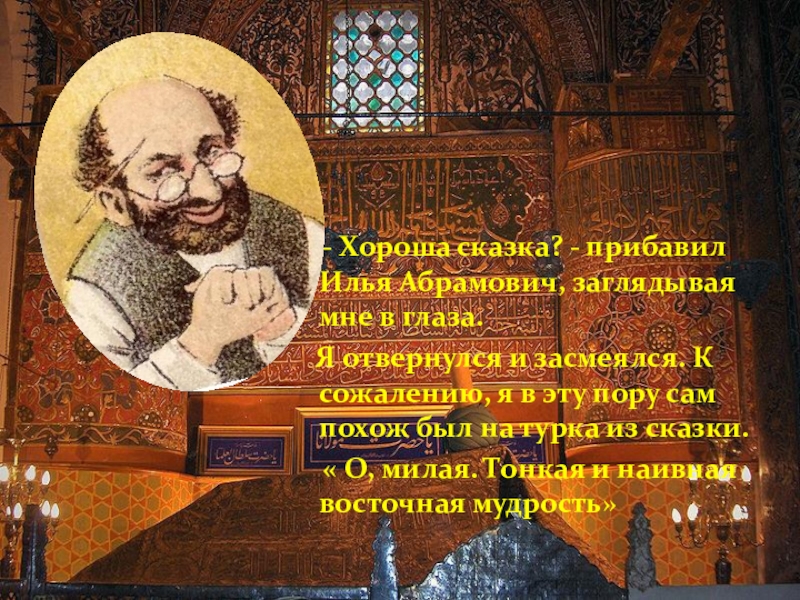 Слайд 20 - Хороша сказка? - прибавил Илья Абрамович, заглядывая мне