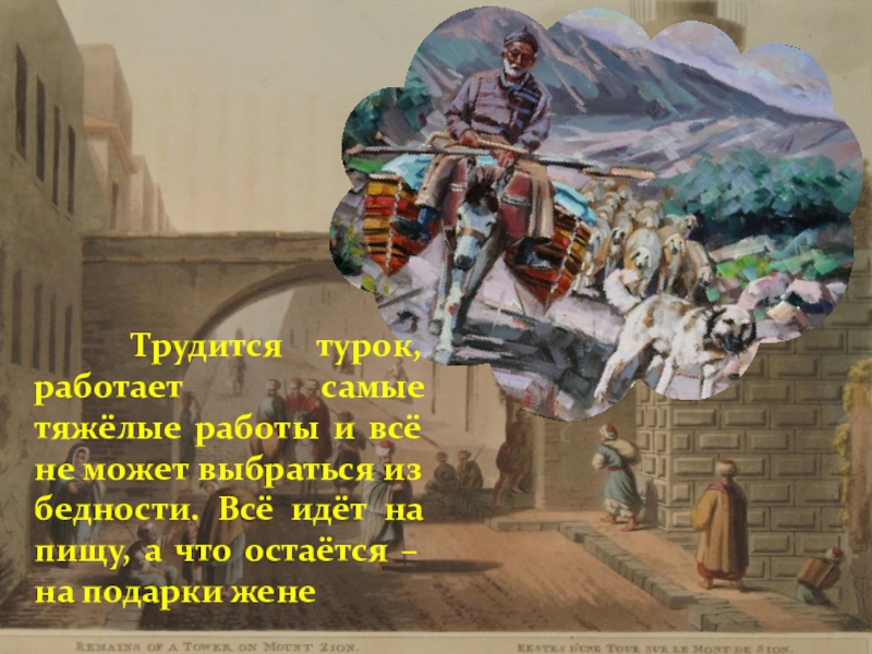 Слайд 6 Трудится турок, работает самые тяжёлые работы и всё не