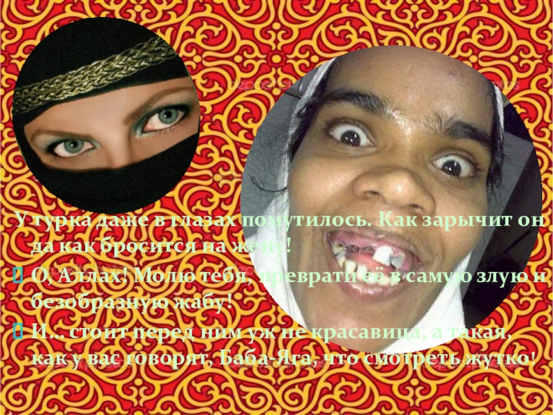 Слайд 16У турка даже в глазах помутилось. Как зарычит он да как