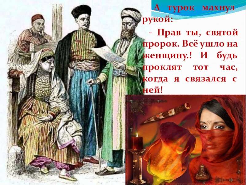 Слайд 5Жил-был на свете один турок, хороший, честный турок, и был он