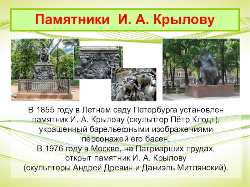 памятник И. А. Крылову (скульптор Пётр Клодт),