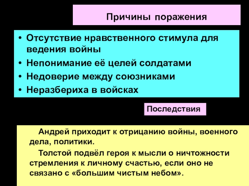 Слайд 26 Андрей приходит к отрицанию войны, военного дела,