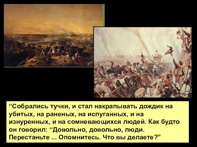 Слайд 34“Собрались тучки, и стал накрапывать дождик на убитых, на раненых, на