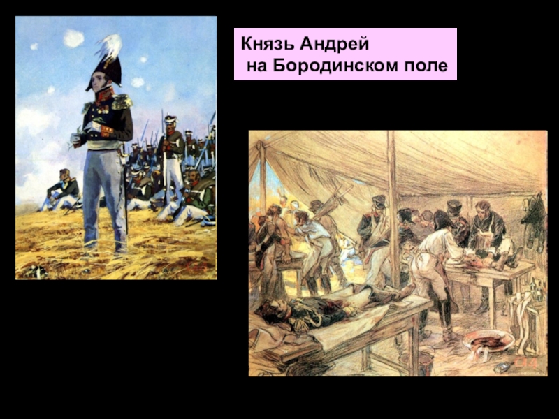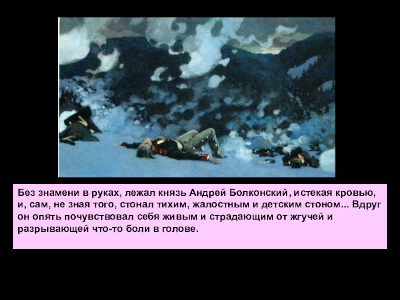 Слайд 23Без знамени в руках, лежал князь Андрей Болконский, истекая кровью, и,