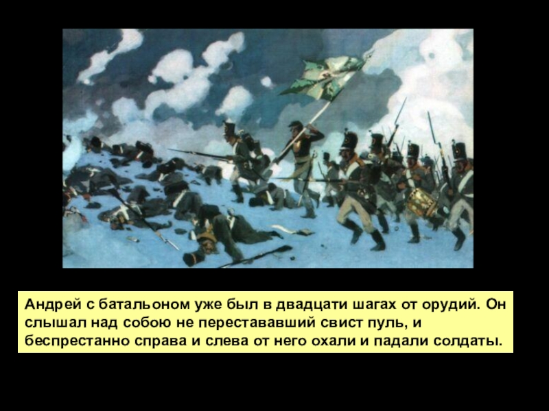 Слайд 22Андрей с батальоном уже был в двадцати шагах от орудий. Он
