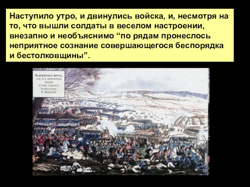 Слайд 19Наступило утро, и двинулись войска, и, несмотря на то, что вышли